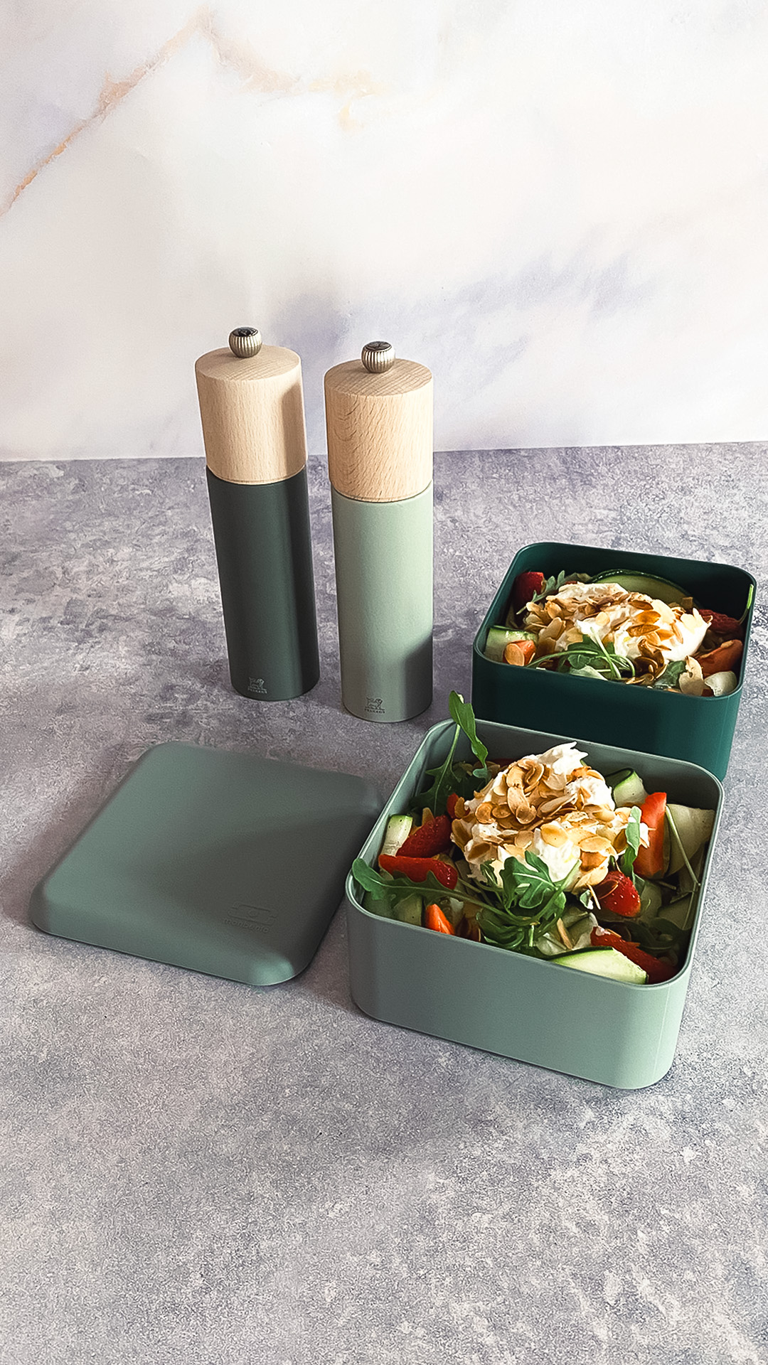 - Répartissez les pâtes, puis les courgettes dans les deux contenants de votre lunch box Square.